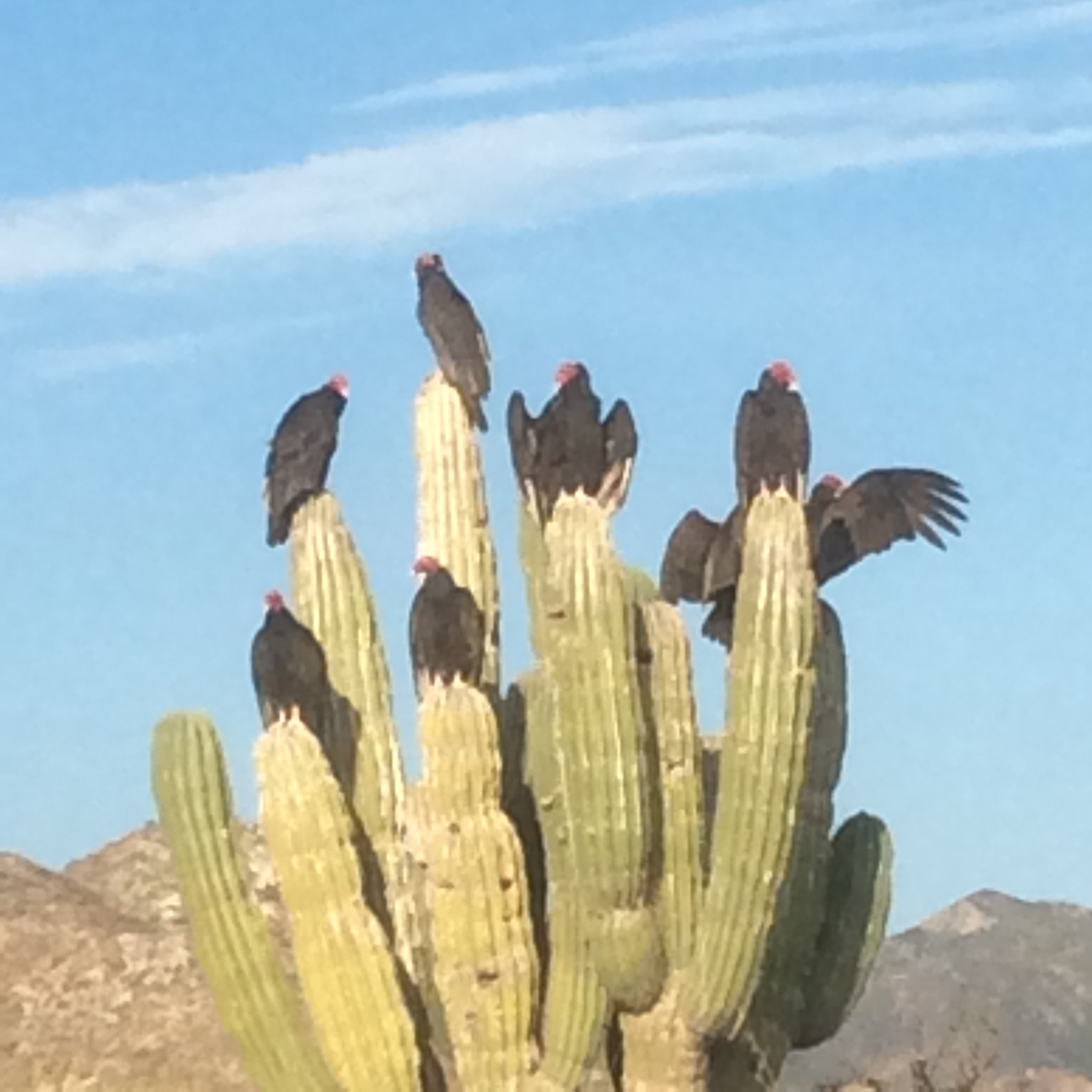 Puffer fish, in various stages of desiccation, lay scattered in the sand. Pelicans cluster and discuss the state of the beach, the water, how the fishing was today, and plans for later. Seagulls are alert, yet respectful of personal space. Frigate birds in the hundreds soar over cliffs.
