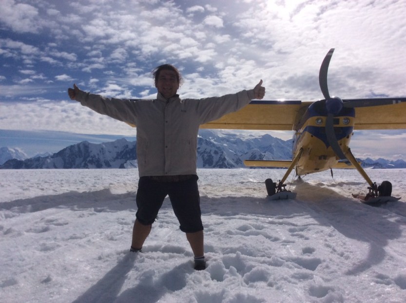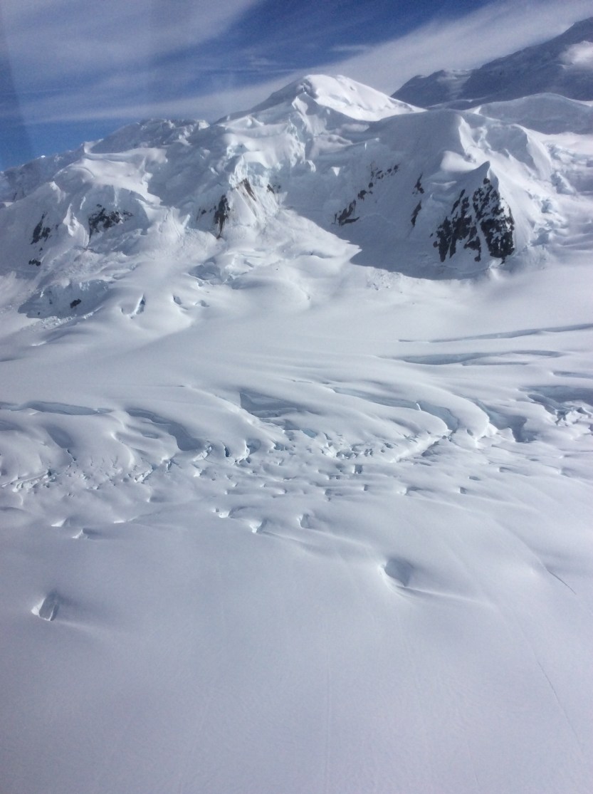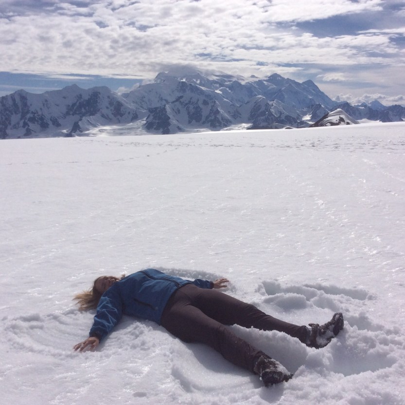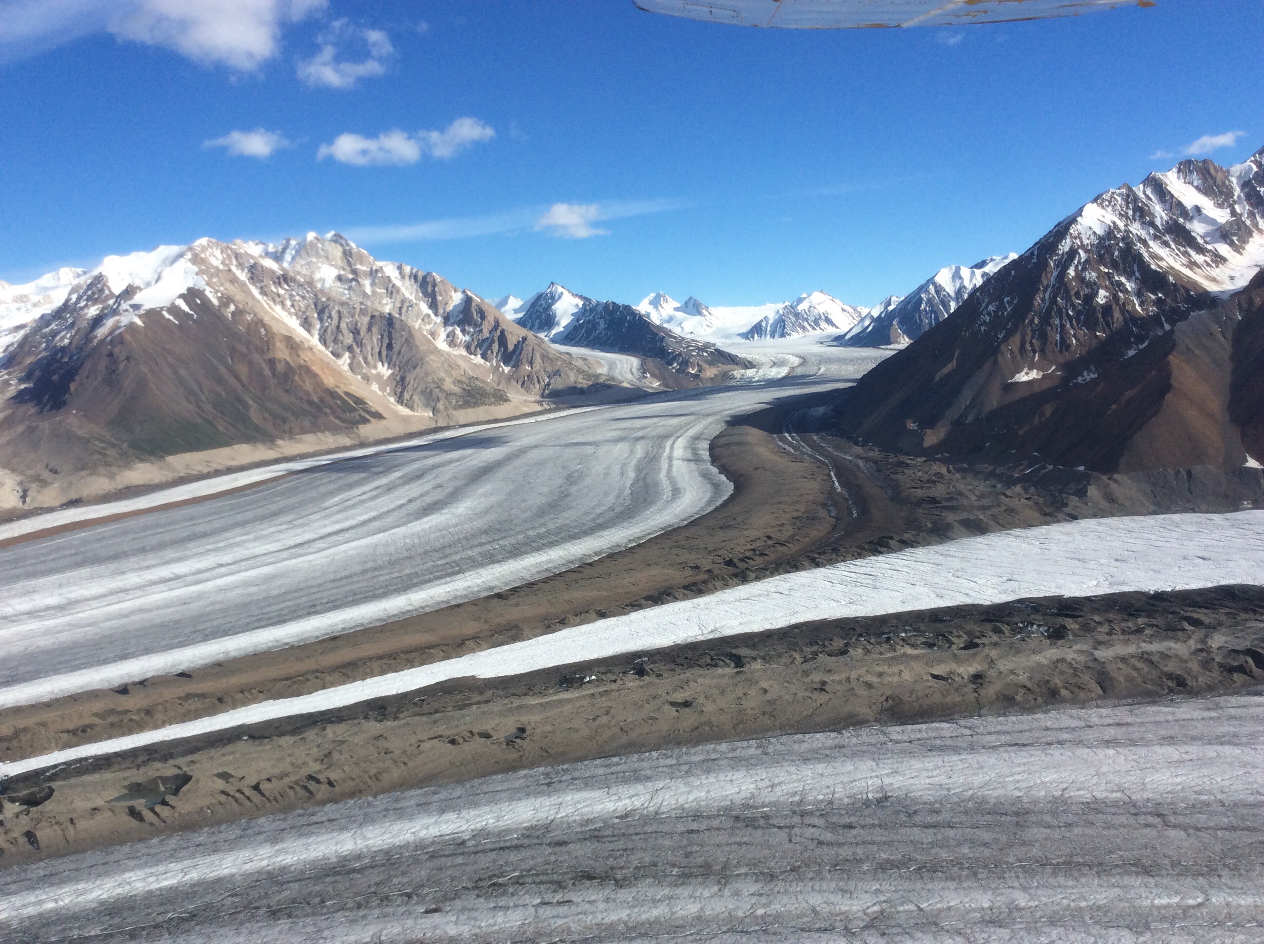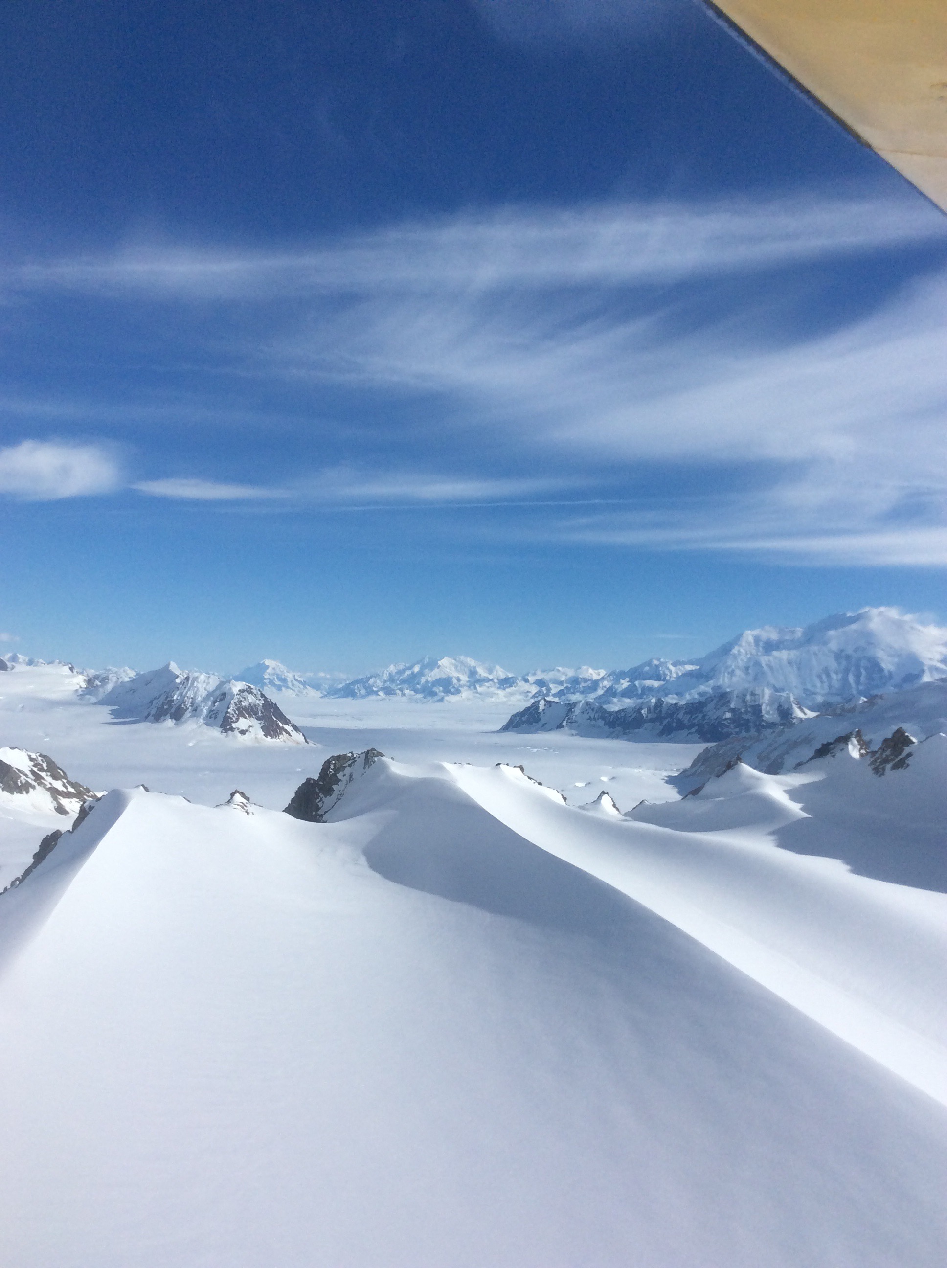Because today we took a flight from a small airstrip at Silver City, Kluane Lake, Yukon Territory, here in Canada. Our aircraft held a pilot and four passengers , and we flew over one of the largest non-polar glaciers on Earth, to land on the largest non- polar glacier on Earth, to look at Mount Logan, the largest mountain on Earth by girth, and the second tallest in North America and the tallest in Canada. On the way we saw the second and fourth tallest peaks in Canada. Your mother made a snow angel on the glacier, and words really cannot describe the feeling. We five were the only human beings standing for hundreds of miles in any direction.